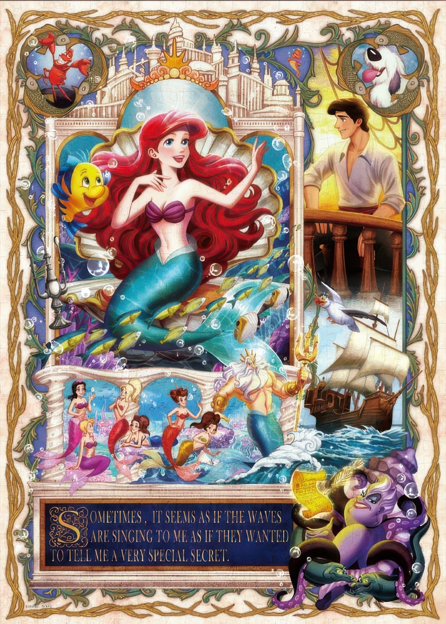 リトル・マーメイドのキャラクターたちを美しく描きます。